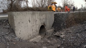 Yol üzərində düz bucaqlı və dairəvi en kəsikli 52 ədəd suötürücü borular tikilib, beton kanal və drenaj işləri görülüb, rabitə və su xətlərinin yeri dəyişdirilib, 4 yerdə en kəsiyi 2,5 x 4 m olan mal-heyvan keçidi tikilib.
