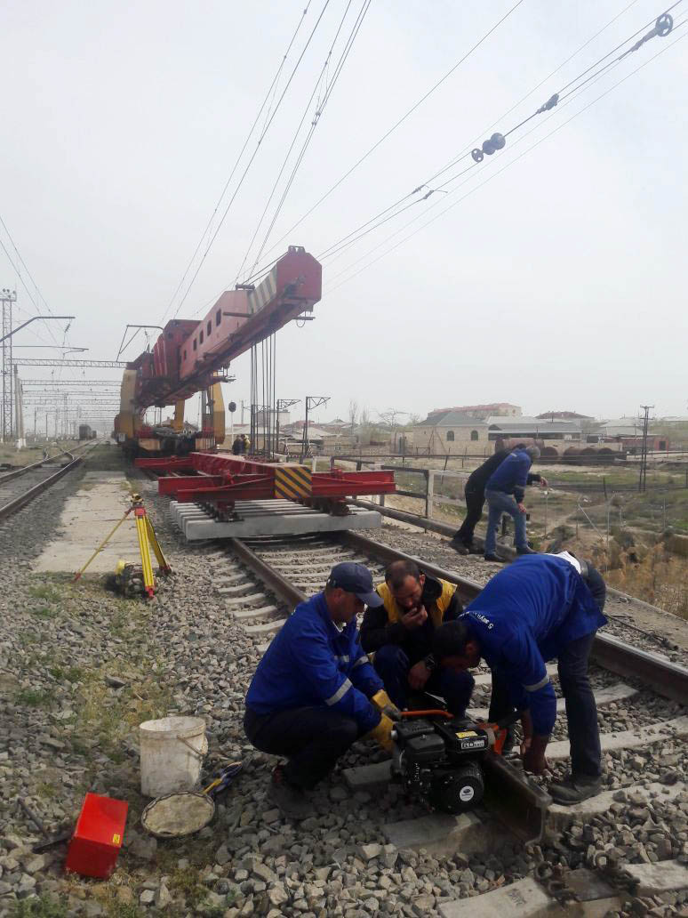 Qobustan dəmir yolu stansiyasında yeni yoldəyişənlər quraşdırılır - FOTO