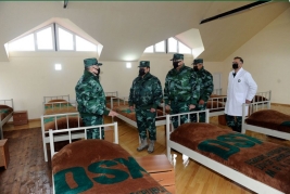 Yeni istifadəyə verilmiş dördmərtəbəli, 70 çarpayı fonduna malik Hərbi Xəstəxanada hərbi qulluqçulara yüksək ixtisaslı tibbi yardımın göstərilməsi üçün yaradılmış şəraitə baxış keçirilmişdir. Hərbi Xəstəxanada əməliyyat, ultra-səs müayinəsi və exokardioqrafiya, stomatoloji, manipulyasiya otaqları, somatik və infeksion palataları vardır. Bununla yanaşı, inzibati otaqlar, əczaxana, depo, yeməkxana, mətbəx, ərzaq və əşya anbarları mövcuddur. Bölmələr tibb heyəti ilə tam komplektləşdirilmiş, zəruri avadanlıq və cihazlarla təchiz olunmuşlar. Hərbi tibb müəssisəsi mərkəzi istilik sistemi ilə təmin edilmişdir.