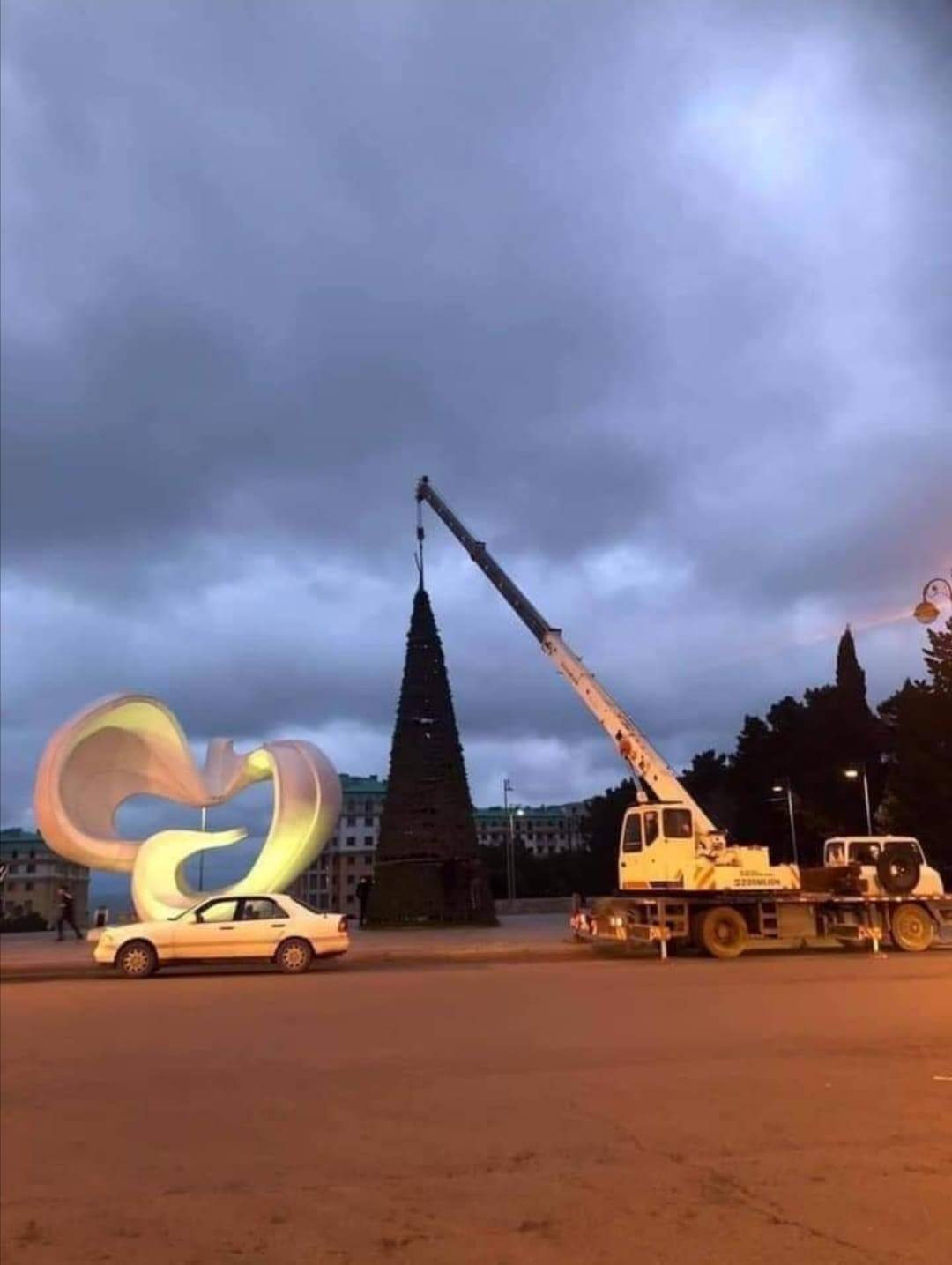 Sosial şəbəkələrdə Sumqayıtda yeni il şənliklərinə hazırlıq getməsiylə bağlı foto yayılıb. Fotodan görünür ki, şəhərin simvolu olan “Sülh göyərçini” abidəsinin qarşısında ənənəvi yeni il yolkası quraşdırılıb. Yayılan yeni fotolarda isə ötən gecədən etibarən həmin yolkanın söküldüyü bildirilir.