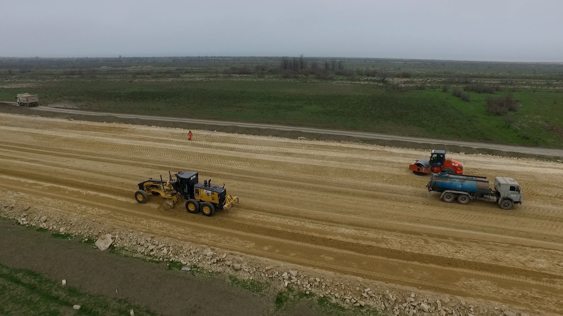 Rusiya sərhədi istiqamətində yeni yolun tikintisi sürətlə davam edir - FOTO