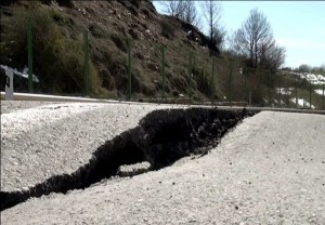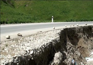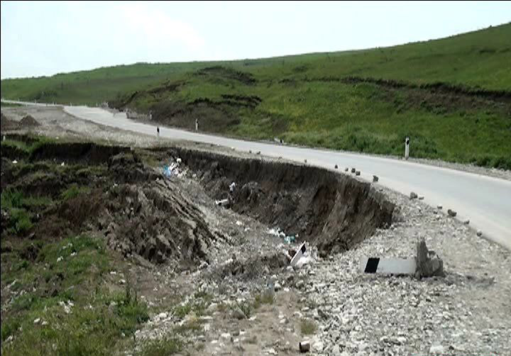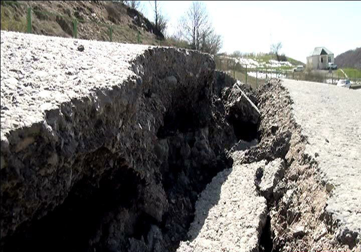 Dağlardan sürüşüb gələn torpaq kütləsi yola doğru hərəkət edir. Hazırda yolun bir hərəkət zolağı dərəyə doğru sürüşərək dağılıb, digər tərəfi isə dağdan gələn torpaq nəticəsində qabarıb.