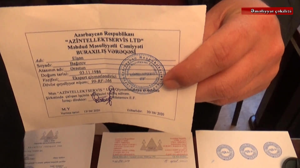 Araşdırma zamanı müəyyən olunmuşdur ki, adıçəkilən şəxs xüsusi karantin rejiminin qaydalarını pozaraq sərbəst hərəkət etmək üçün 10-a yaxın vətəndaşın saxta sənədlər əsasında “icaze.e-gov.az” portalında qeydiyyatdan keçirib. Bununla da Oktay Quliyev saxta sənəd satdığı şəxslərin xüsusi karantin qaydalarının tələblərini pozaraq sərbəst hərəkət etməsinə şərait yaradıb. Saxlanılan şəxsə məxsus paytaxt ərazisində yerləşən ofisə baxış zamanı eyni məqsədlə hazırlanmış saxta arayışlar, boş blanklar, möhürlər və digər iş üçün əhəmiyyət kəsb edən maddi sübutlar aşkar olunaraq götürülüb.