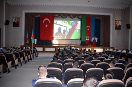 Tədbirdə çıxış edənlər rəşadətli Azərbaycan Ordusunun qazandığı Zəfərdən, bu Qələbənin tarixi əhəmiyyətindən, Vətən müharibəsində Azərbaycan oğullarının qəhrəmanlığından və şəhid kapitan E.Kazımovun həyatından danışıblar.