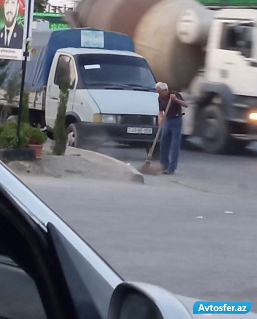 Şəhid oğlunun fotosuna görə hər gün yolu süpürən ata - FOTO