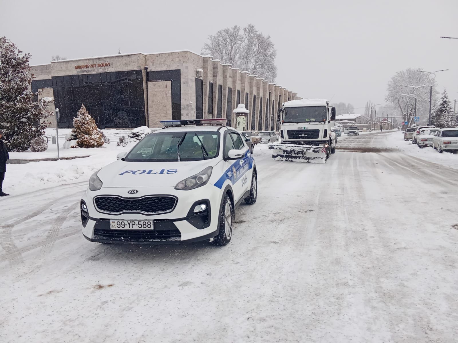 Gecə saatlarından təşkil edilən fasiləsiz xidmət zamanı digər dövlət orqanları ilə birgə yollar, nişanlar qardan və buzdan təmizlənir, yerlərə qum və duz səpilir.