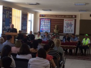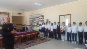 Tədbirdə çıxış edən Bakı şəhər DYP-nin bölmə rəisi, polkovnik Vaqif Əsədov təhlükəsizliyin təmin olunması sahəsində həyata keçirilən fəaliyyətlər barədə danışıb və qeyd edib ki, bu fəaliyyətin əsas hissəsi son 10 il ərzində təhsil müəssislərində təşkil olunan təbliğat işi ilə əlaqədardır. V.Əsədov qeyd etdi ki, hər bir vətəndaş yol hərəkətinin iştirakçısıdır və bu səbəbdən yol hərəkəti qaydalarına əməl etməlidir: "Bu qaydalara əməl edənlər bununla da müvafiq icra qurumları tərəfindən yollarda təhlükəsizliyin təmin olunması ilə əlaqədar keçirdiyi tədbirlərə dəstək vermiş olurlar ki, hamı bunda xüsusilə, maraqlı olmalıdır".
