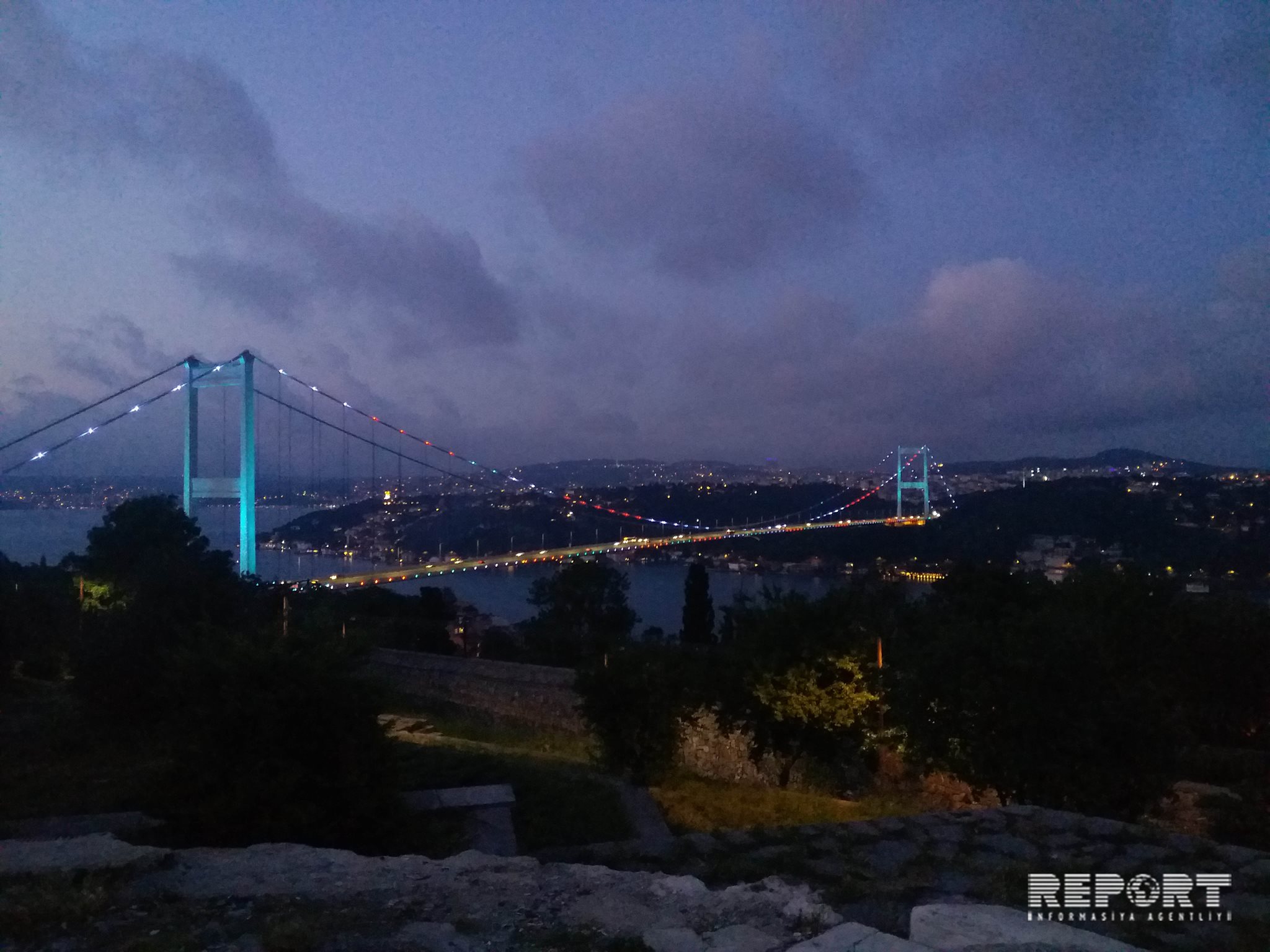 Sultan Mehmet körpüsü Azərbaycan bayrağının rənglərinə boyanıb - FOTO