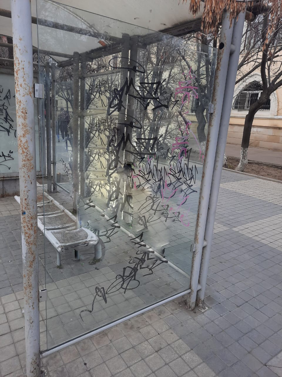 Sumqayıt Şəhər Polis İdarəsinə şəhər sakinlərindən avtobus dayanacaqlarında şəhərin estetik görünüşünə xələl gətirən, anlaşılmayan müxtəlif işarələrin yazılması barədə müraciətlər daxil olub. Şəhər Polis İdarəsinin əməkdaşları tərəfindən keçirilən  tədbir zamanı dayanacaqların şüşələrinə işarələr yazan şəhər sakinləri yetkinlik yaşına çatmayan U.Salmanov və E.Yusifov (ad soyad şərtidir) müəyyən edilərək valideynlərinin iştirakı ilə Polis İdarəsinə dəvət ediliblər. Onlar valideynlərinin iştirakı ilə dindirilərkən törətdikləri əməli etiraf ediblər. Polis İdarəsində qeyd edilən əməli törədən azyaşlılarla və onların valideynləri ilə profilaktik söhbətlər aparılıb və bir daha belə hərəkətlərə yol verməməyin vacibliyi onların diqqətinə çatdırılıb.