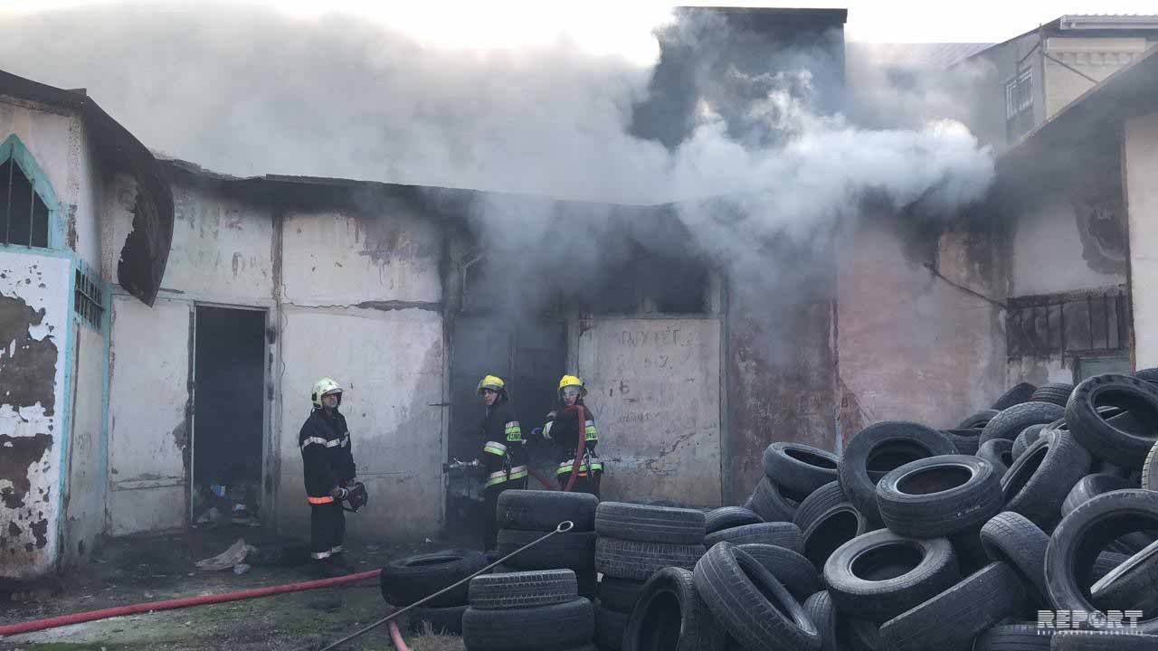 Sumqayıt şəhərində təkər satışı mağazasında güclü yanğın başlayıb.