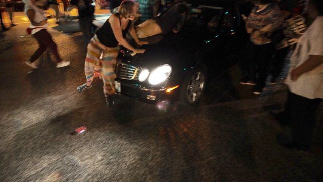 Sürücü avtomobili kütlənin üzərinə sürdü