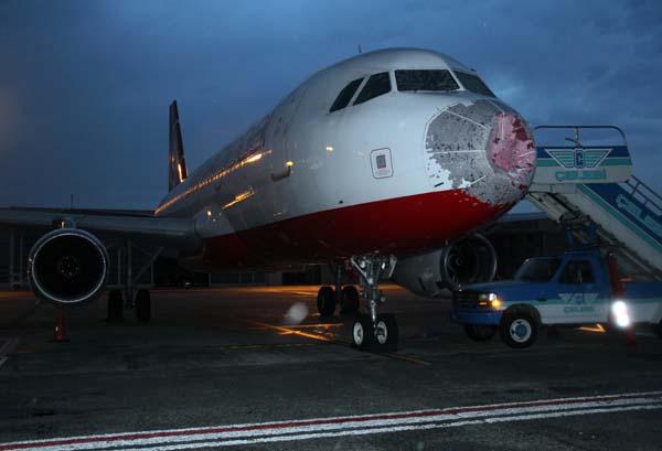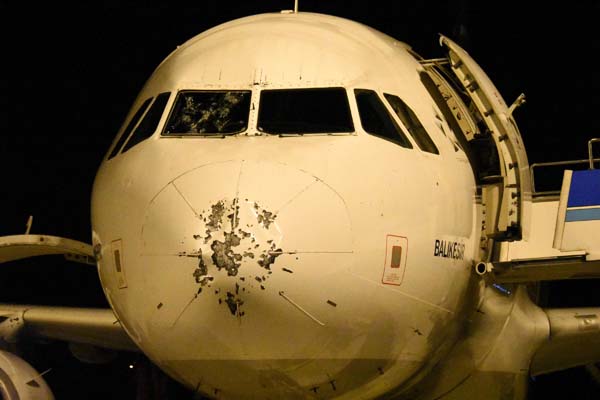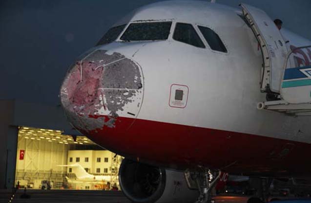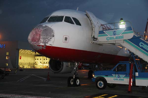 İstanbulda yağan dolu və güclü külək havada olan təyyarələr üçün təhlükə yaradıb. Avtosfer.az “Qafqazinfo”ya istinadən xəbər verir ki, Atatürk limanından hava qalxan “Atlasglobal” aviaşirkətinin təyyarəsi təcili eniş edib. Göyərtəsində 121 sərnişin olan Airbus A320 təyyarəsi İstanbuldan Ercana getmək üçün hava qalxıb. Ancaq dolu səbəbindən geri Atatürk hava limanına dönməli olub. Türk Hava Yollarına məxsus Airbus A321 isə ön şüşənin çatlaması və təyyarənin burnunda əmələ gələn zədə səbəbində Çanaqqala da qəza enişi etməli olub. Hadisə zamanı təyyarənin göyərtəsində 183 sərnişin olub.