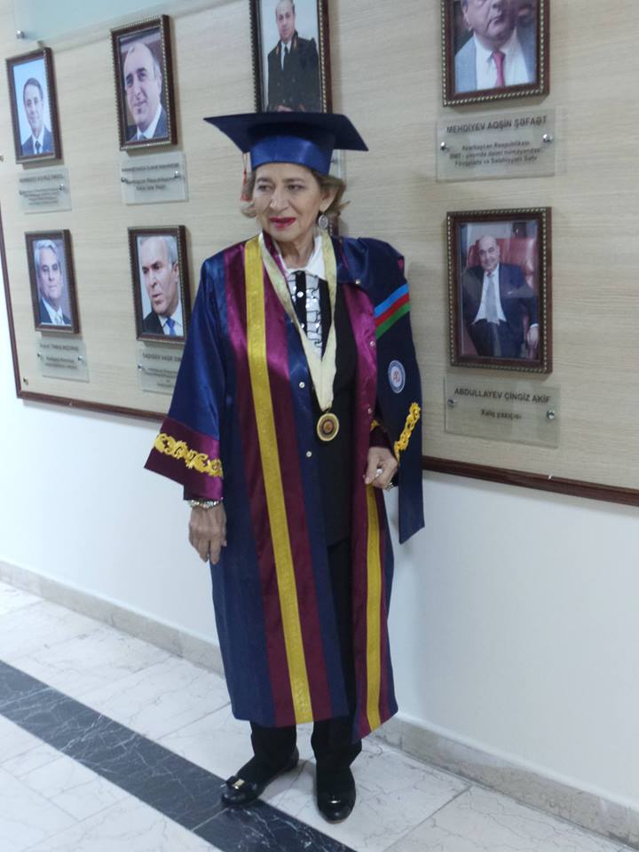 Daha sonra universitetin xarici əlaqələr üzrə prorektoru, dosent Səyavuş Qasımov fəxri doktor diplomunu Madalet Grabbe Başustaya təqdim edib.