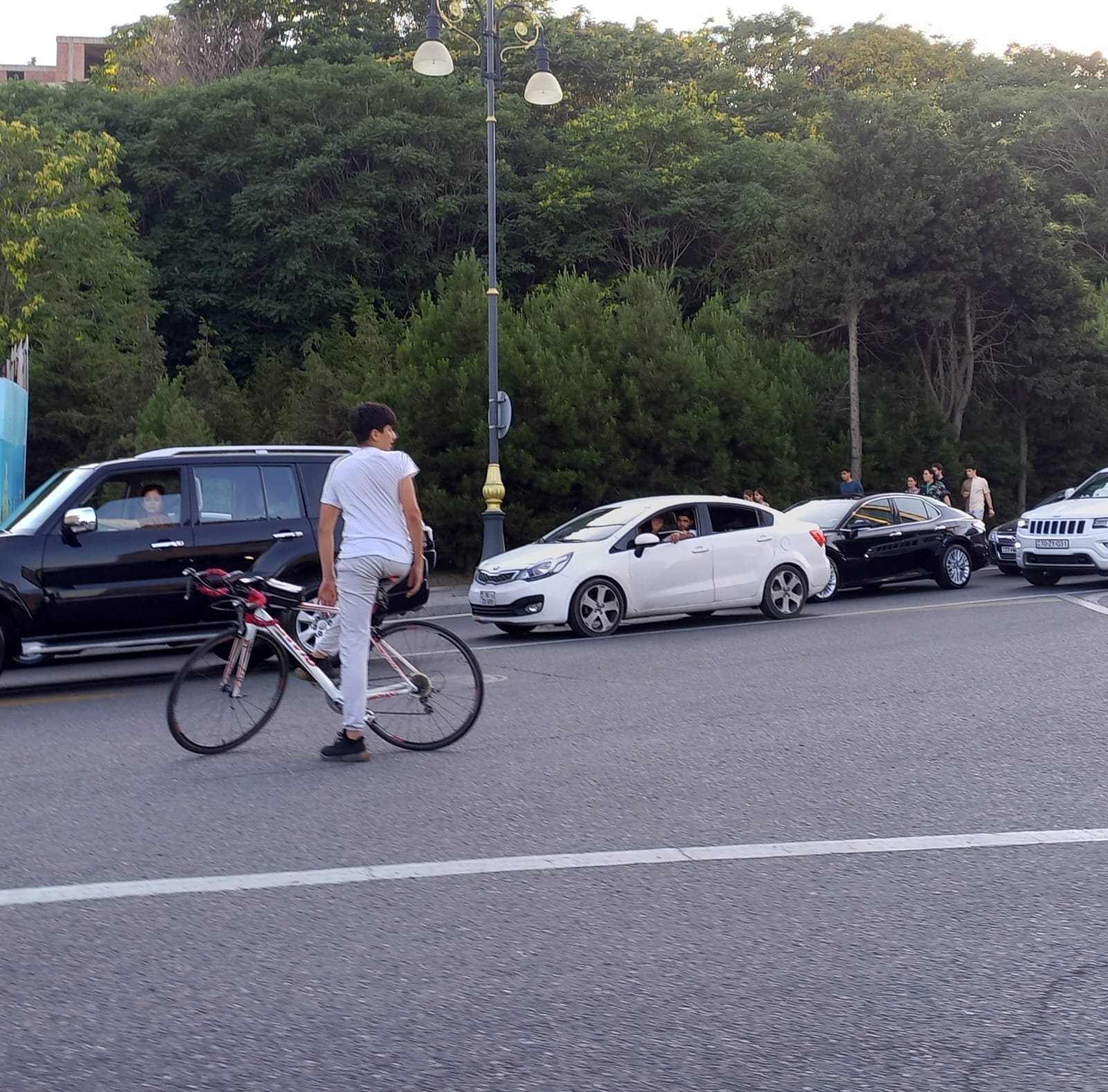 Bu günlərdə şəhərdə sıx tıxac olan vaxt bu 3 uşaq Həsən Seyidbəyli və Mehdi Hüseny küçələrinin kəsilməsində (Axundov bağıından Şəhidlər xiyabanına tərəf) velosiped sürürdü. Onların təhlükəsizlik adacığında dayanması belə, təhlükəsiz şəraitdə olduqlarına dəlalət etmirdi.