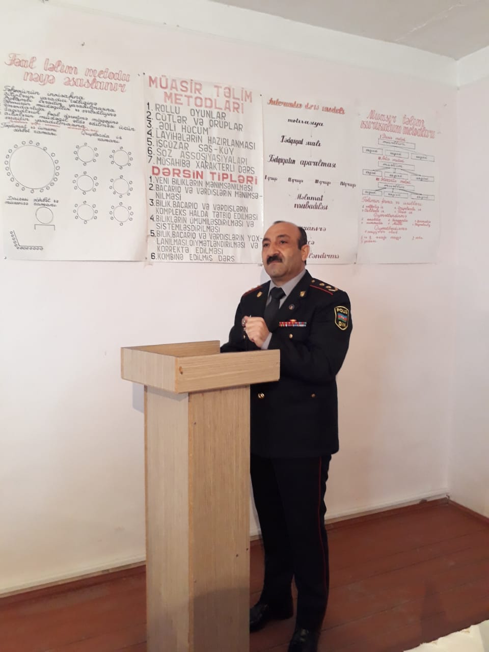 RPŞ-nin rəisi, polis polkovnik-leytenantı Həmid Həsənov şagirdlərə müasir dövrümüzdə gənclər arasında ən çox yayılan bəlalardan olan narkomaniyanın fəsadlarından danışıb. O, bildirib ki, narkomaniyanın gənc nəslin arasında asan yayılmasının ən başlıca səbəbi onların bu maddələr haqqında yetərincə məlumatlı olmamalarından irəli gəlir. Çünki ilk dəfə bu maddədən istifadə edən şəxslər bir müddətdən sonra onun aludəçisinə çevriləcəyini dərk etmir, vaxt keçdikdə isə onlarda bu maddələrə qarşı təlabat və aslılıq yaranır. Ona görə də yeniyetmə və gənclər pis vərdişlərdən daim uzaq durmalı, bu yola düçar olmuş şəxslərdən kənar gəzməli, ali təhsil ocaqlarının tələbəsi olmaq üçün əzmlə çalışmalısınız.
