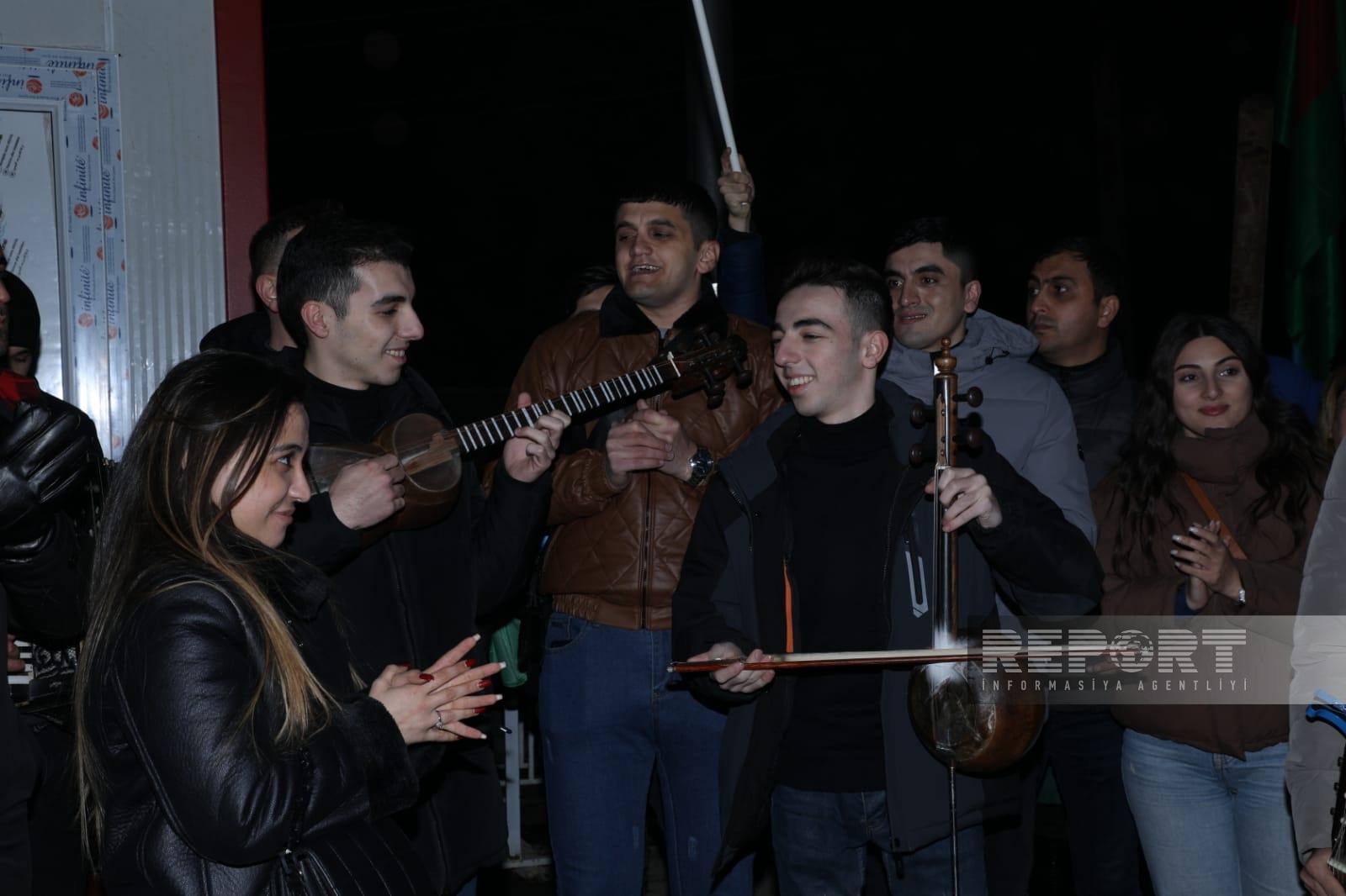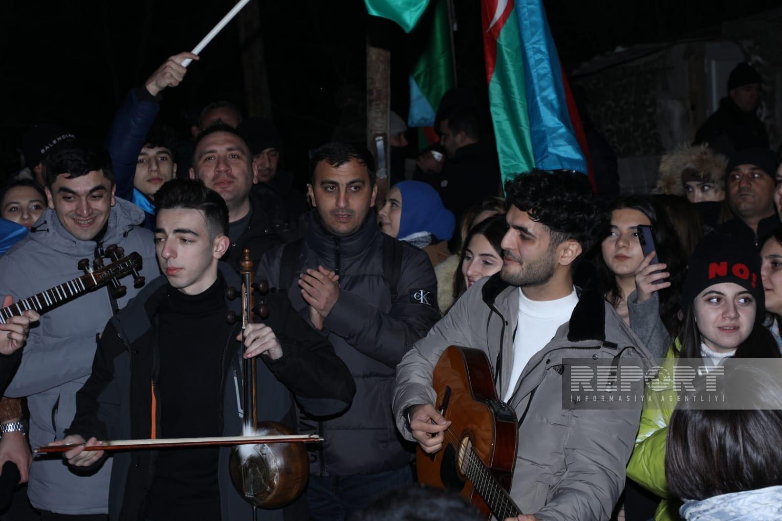 Xankəndi-Laçın yolunda aksiya iştirakçıları vətənpərvərlik ruhunda mahnılar ifa edirlər - FOTO