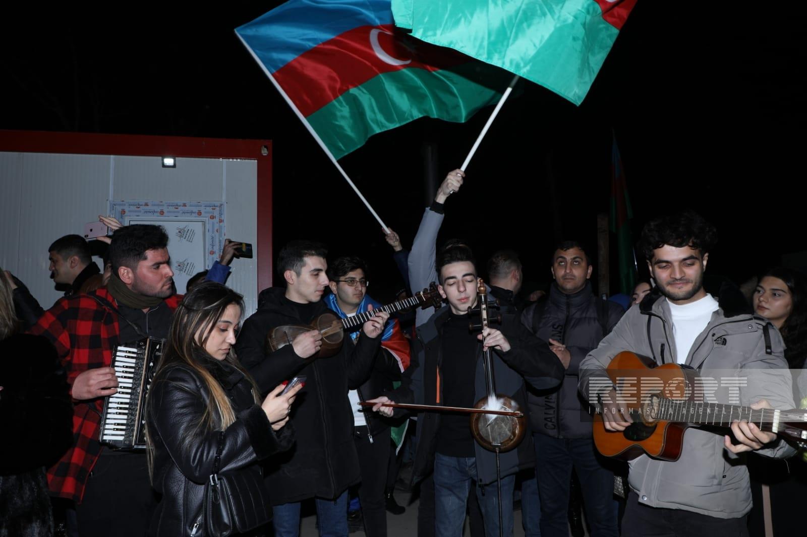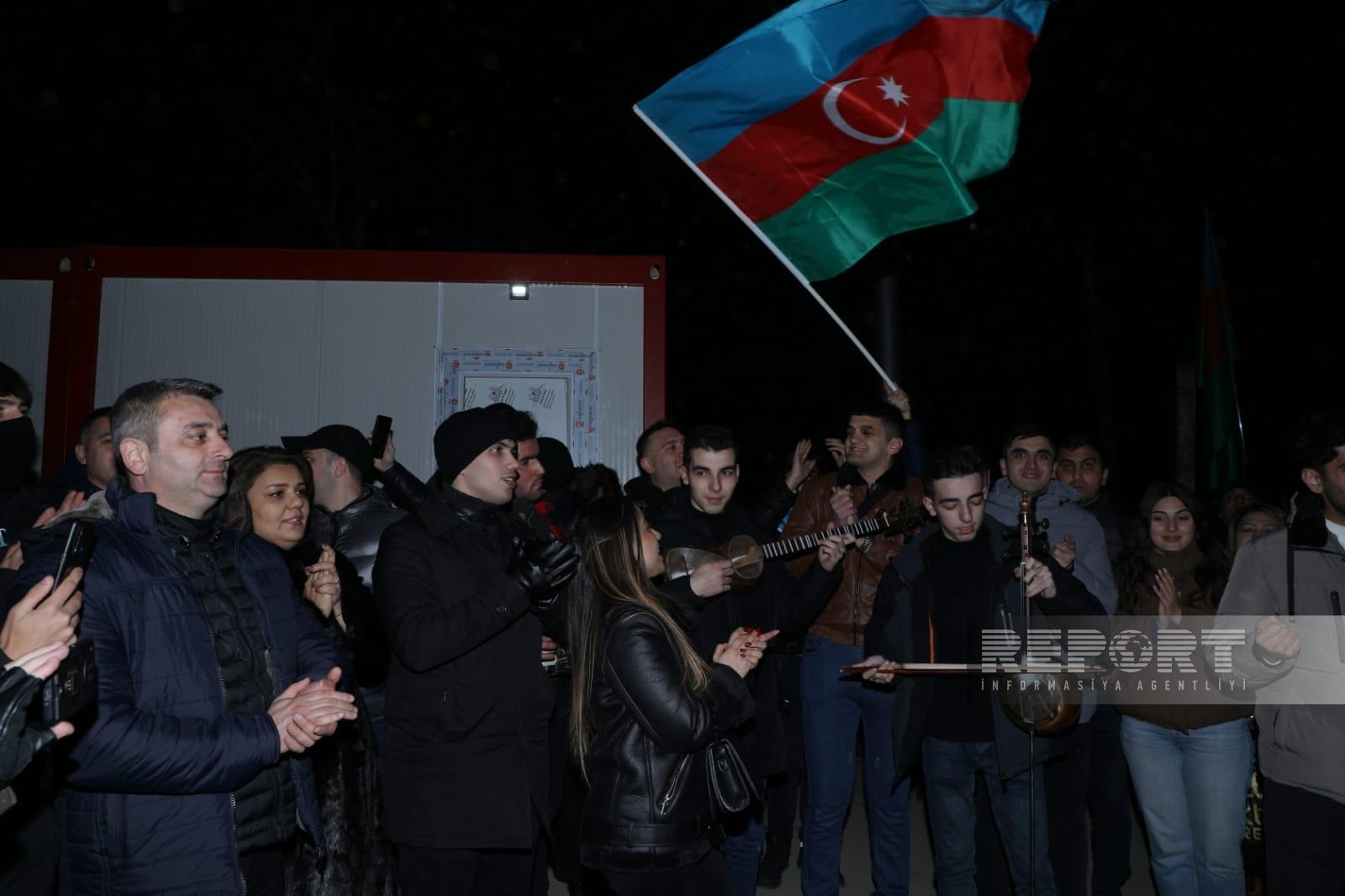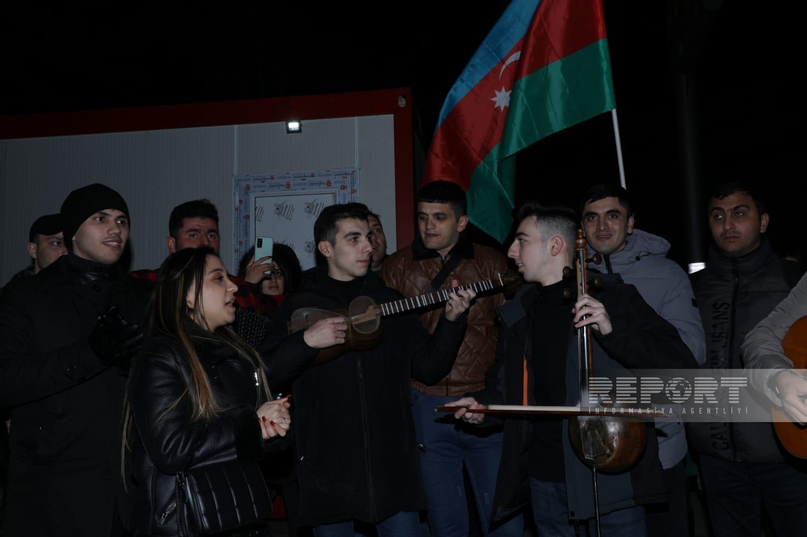 Xankəndi-Laçın yolunda aksiya iştirakçıları vətənpərvərlik ruhunda mahnılar ifa edirlər.