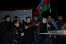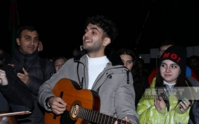 Etiraz aksiyasının iştirakçıları olan gənclər tar, kamança, skripka, qarmon və gitara ilə vətənpərvərlik ruhunda musiqilər, həmçinin "Qarabağ" təsnifi, "Sarı gəlin" və digər mahnılar səsləndirirlər.