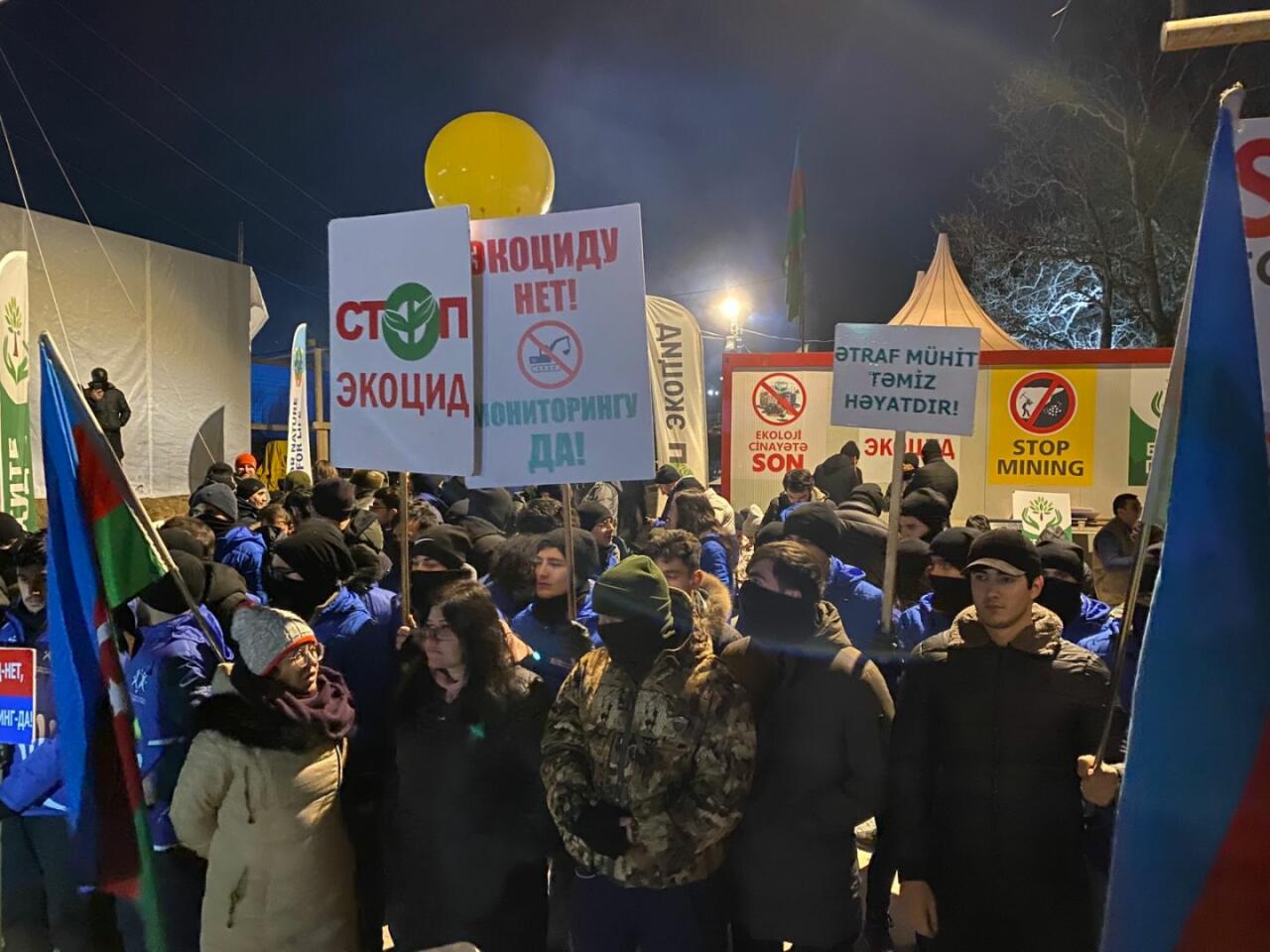 Qeyri-hökumət və könüllü təşkilatlarından ibarət aksiya iştirakçıları Azərbaycan ərazilərində faydalı qazıntı yataqlarının qanunsuz istismarından irəli gələn ekoloji fəlakət və digər fəsadlarla bağlı ilkin monitorinqin aparılmalı olması barədə şüarlar səsləndirirlər. Aksiya iştirakçılarının fəallığı onların tələbləri yerinə yetirilənədək ərazini tərk etməyəcəklərini göstərir.