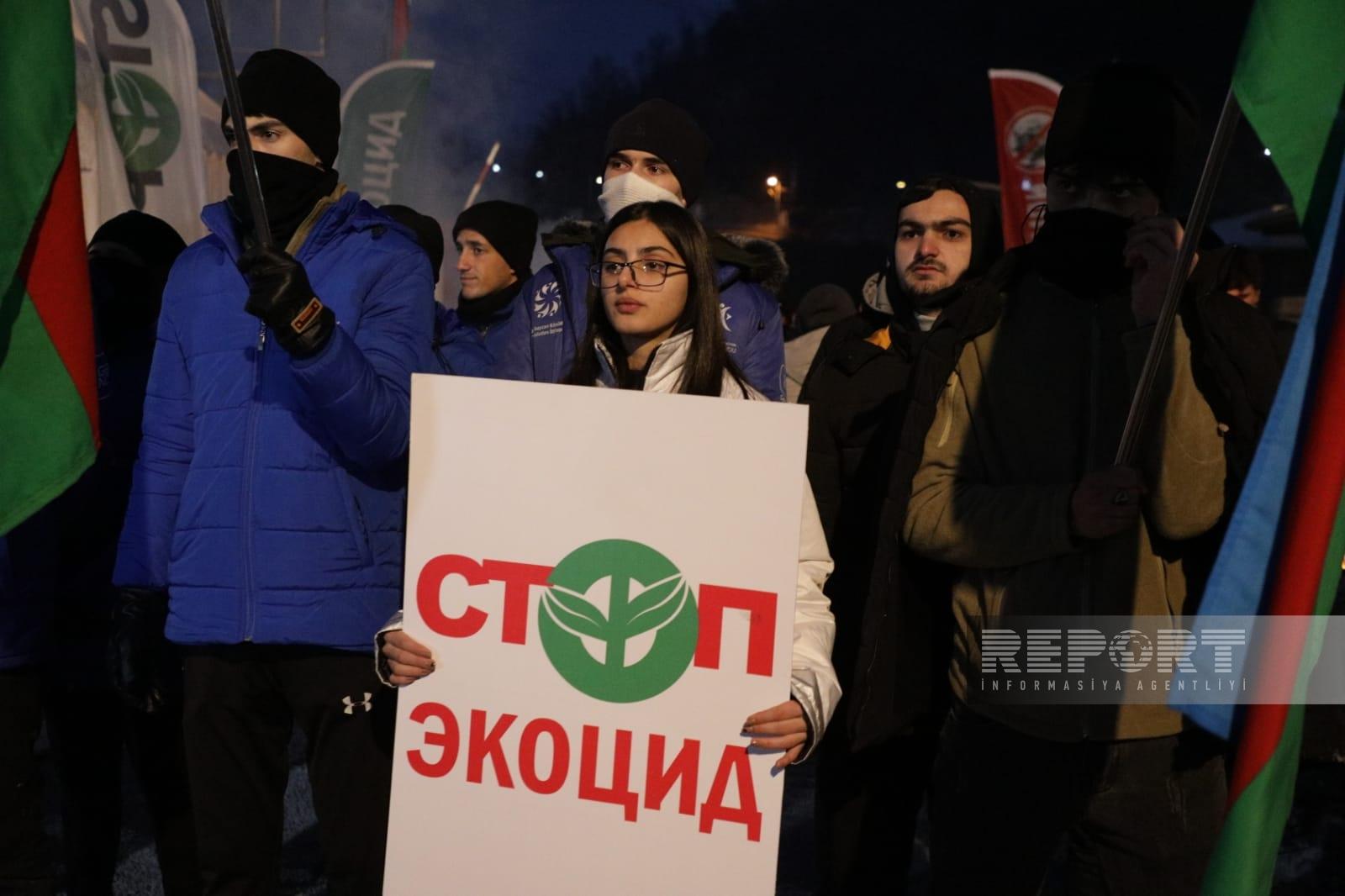 Hazırda hava şəraitinin soyuq olmasına baxmayaraq, Azərbaycanın Qarabağ iqtisadi rayonunda faydalı qazıntı yataqlarının qanunsuz istismarı əleyhinə Xankəndi-Laçın yolunda keçirilən etiraz aksiyası davam edir.