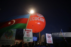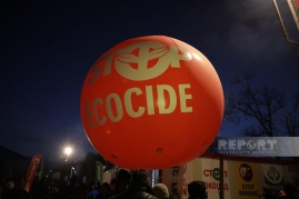 Belə ki, etirazçılar balonun üzərinə "Stop Ecocide" yazıblar.
