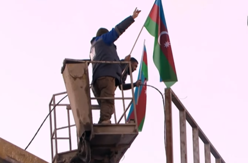Xankəndi yoluna Azərbaycan bayrağı asıldı - FOTO