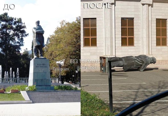 Xankəndidə Stepan Şaumyanın heykəli sökülüb - FOTO