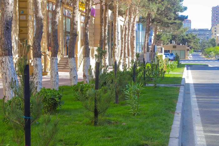Bu işlər çərçivəsində binaların yaxınlığında vətəndaşların sərbəst gediş-gəlişinə mane olan və təhlükə yaradan əlavə və yöndəmsiz tikililər, qanunsuz çəpərlər sökülüb. Küçə boyunca səkilərə dekorativ daşlar düzülüb, yol kənarlarında ağaclar, bəzək kolları və güllər əkilib, yeni yaşıllıq zolaqları salınıb. Ağaclara aqrotexniki qulluq edilməsi və yaşıllığın sulanması üçün su xətləri çəkilib.