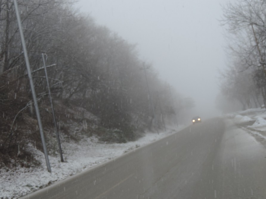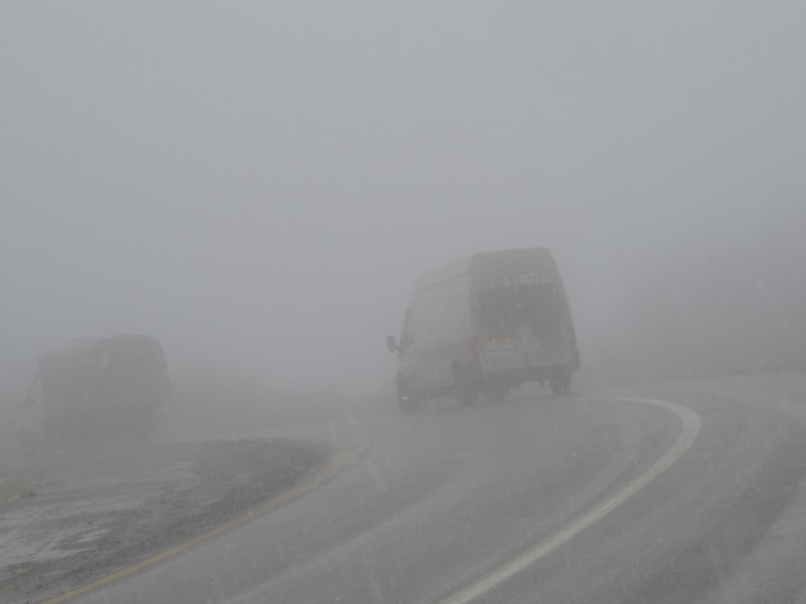 Yağan ilk qar və qatı duman sürücülər üçün bəzi çətinliklər yaradıb - FOTO