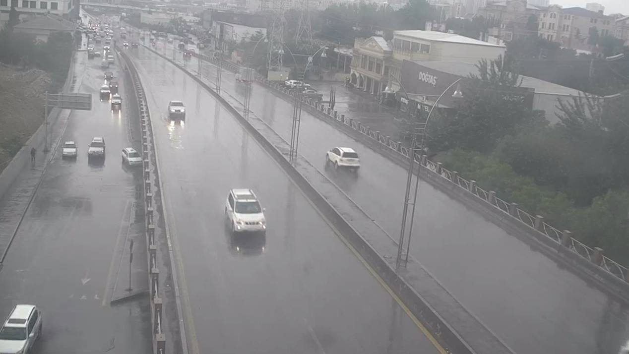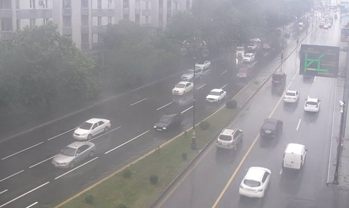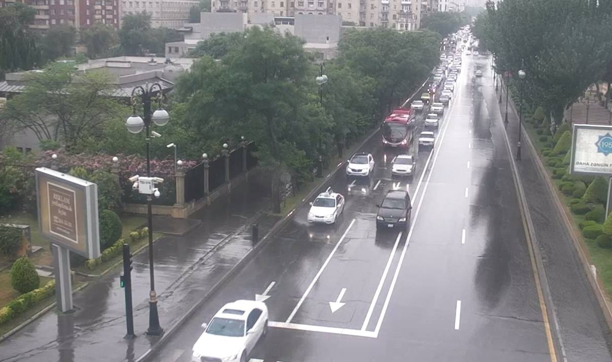 Yağışa görə iki əsas prospektdə sürət həddi azaldıldı - FOTO