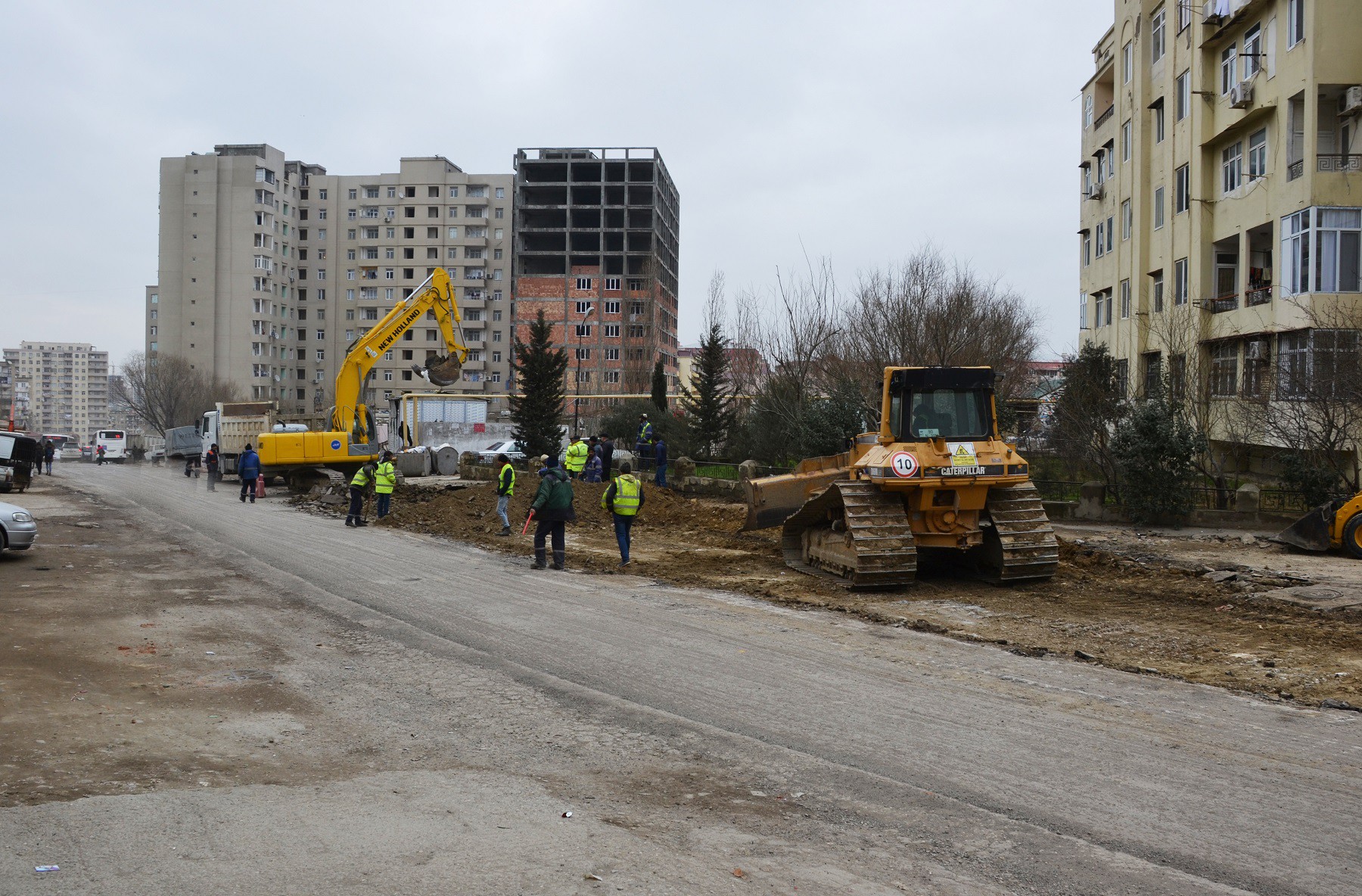 Tikinti layihəsinə uyğun olaraq mövcud yeraltı kommunikasiya xətləri (su,qaz,rabitə,elektrik və s.) bərpa olunur, zərurət yarandığı təqdirdə yeniləri çəkilir və ya yolun hərəkət hissəsindən kənarlaşdırılır, 5 yerdə yolun altından 250 metr uzunluğunda ehtiyyat borular atılacaq. Bu işlərə paralel olaraq səth sularının yoldan normal kənarlaşdırılması üçün mövcud yağış-kanalizasiya sistemi bərpa olunacaq və zəruri olan yerlərdə yeni sistem qurularaq yağış barmaqlıqları qioyulacaq. Ümumilikdə küçə boyu 21 ədəd yeni yağış barmaqlıqları quraşdırılacaq, kommunikasiya xətlərinin dəmir-beton plitələri qaldırılaraq 97 ədəd yeni baxış qapaqları qoyulacaq. Bundan başqa yolun relyefdən aşağı olan hissələrində torpaq yatağının qaldırılması üçün yararlı qrunt tökülərək yayılacaq və kipləşdiriləcək. Yeni yol yatağı işlənən ərazilərdə optimal-qırmadaş və qum-çınqıl qarışıqlarından ibarət müxtəlif qalınlıqlarda yol əsasının tikintisi və bərpası işləri də aparılacaq. Küçə boyu aparılan bu işlər gələcəkdə suyun yığılmasının qarşısını alacaq və asfalt-beton örtüyün tez bir zamanda sıradan çıxmasını sığortalamış olacaq.