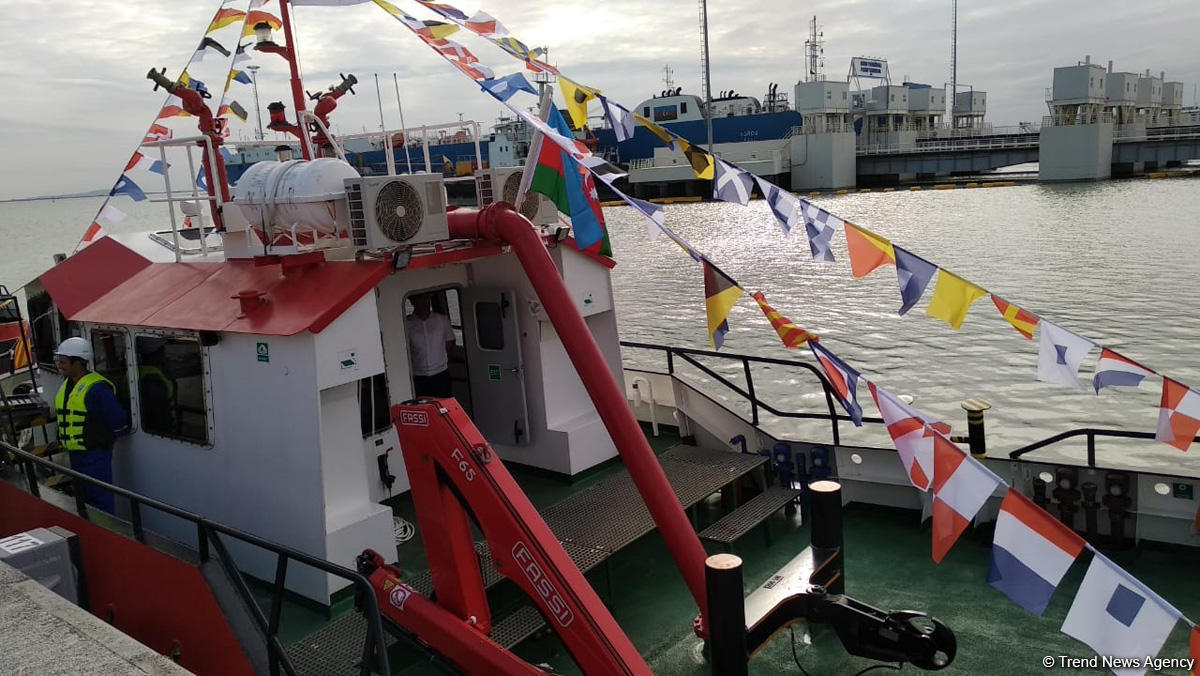Yeni yedək gəmisinin istismarına başlanılıb - Bakı Limanında