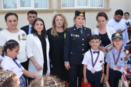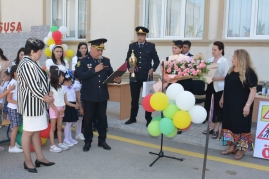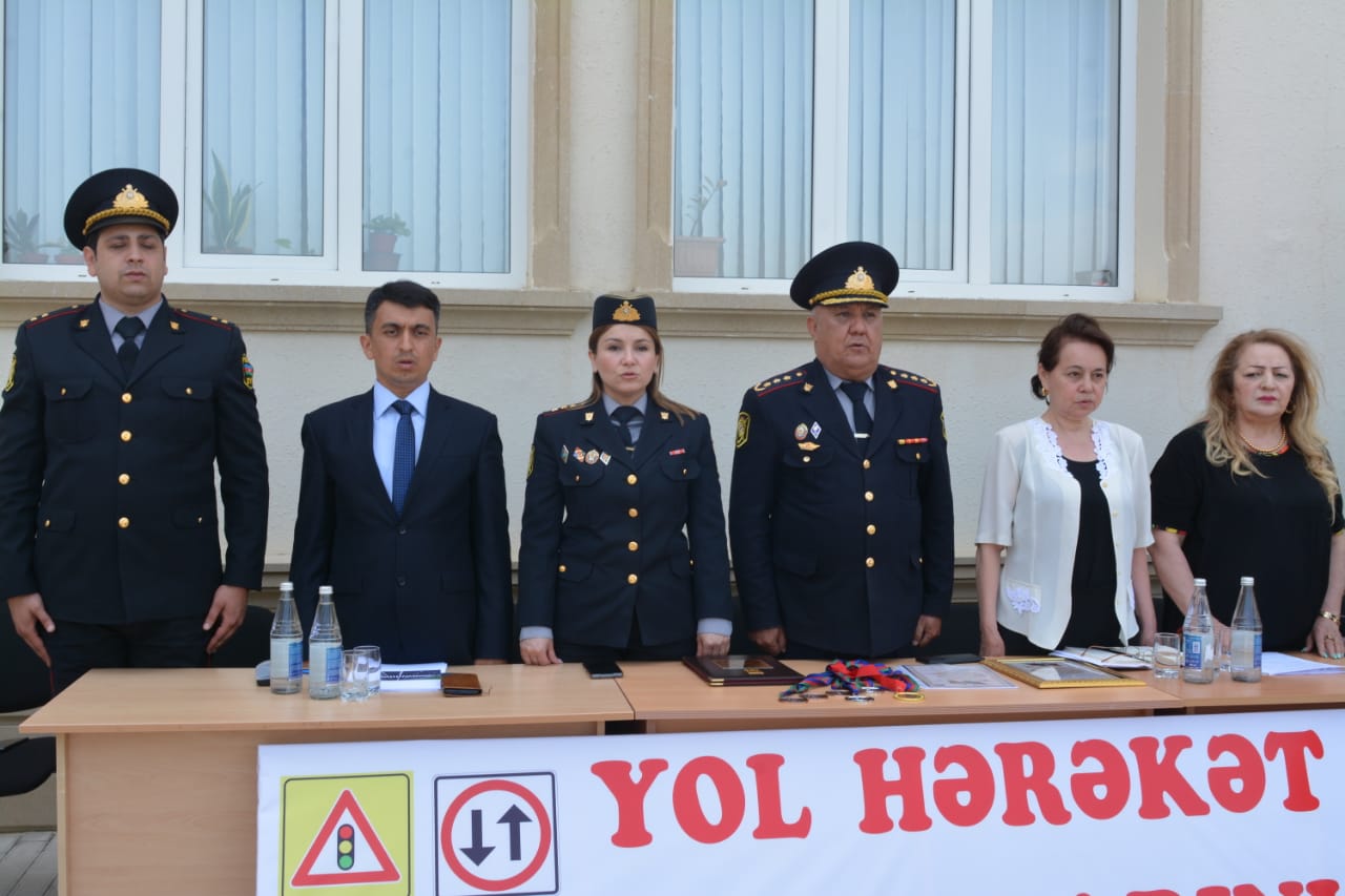 “Azərbaycan Respublikasında yol hərəkətinin təhlükəsizliyinə dair 2019-2023-cü illər üçün Dövlət Proqramı”ndan irəli gələn vəzifələri yerinə yetirdiyinə və yol hərəkəti qaydalarının öyrədilməsi məqsədilə uşaqlarla aparılan müntəzəm təbliğat işinə görə məktəb kollektivinə fərqləndirici kubok, direktor Qənirə Əmircanovaya və tədbirin təşkilarçısı, ibtidai sinif müəllimi Sevinc Süleymanovaya “Təşəkkürnamə” təqdim olunub.
