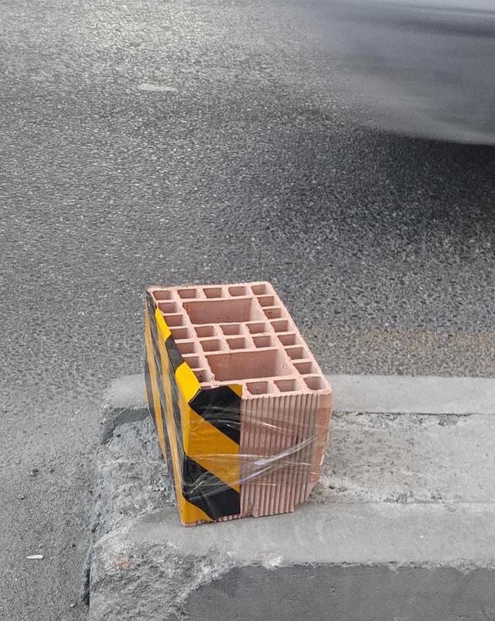 Baş Dövlət Yol Polisi İdarəsinin Hərəkətin Təşkili Şöbəsinin hərəkətsizliyini görən sürücülər kərpicin üzərinə işıqqaytarıcılı elementi yapışdıraraq ayırıcı zolağın kəsiyinə qoyublar ki, qəzaların qarşısını alsınlar.