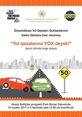 BMT tərəfindən qəbul edilmiş Ümudünya Yol Qəzaları Qurbanlarının Xatirə Günü respublikamızda 7 ildir ki, qeyd edilir. Tədbirin keçirilməsində məqsəd yol qəzalarında həlak olanların xatirəsini yad etmək, həlak olanların ailələrinə mənəvi dəstək olmaq, minlərlə uşağın həyatına son qoyan səssiz bəlanın ciddiliyini ictimaiyyətə çatdırmaqdır.