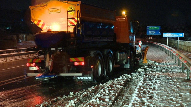 “Azəravtoyol” ASC-yə məxsus maşın-mexanizmlər və canlı qüvvə gecə boyu qarın ən çox yağdığı və buzlaşmanın olduğu ərazilərdə vəziyyətə nəzarət edib, hərəkətin təhlükəsizliyinin təmin olunması məqsədi ilə gecə və səhər saatlarında buzlaşma baş verən yollara qum-duz qarışığı səpilib.