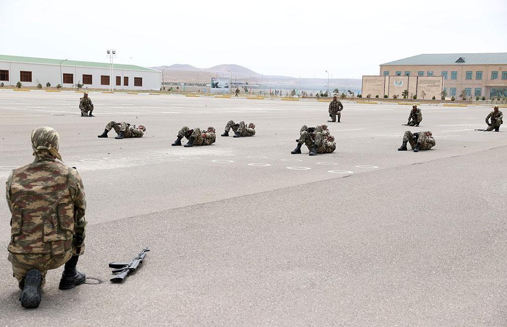 Əsgər klubunda keçirilən təntənəli mərasimdən sonra sıra meydanında hərbçilərin nümunəvi çıxışları olub.