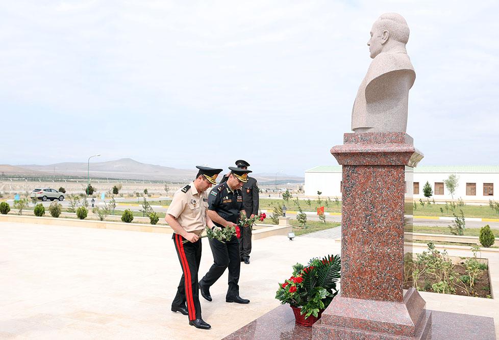 Əvvəlcə Müdafiə Nazirliyinin və Ordu birliyinin rəsmiləri, Vətən müharibəsi iştirakçıları, şəhid ailələrinin üzvləri, xidmətlə fərqlənən hərbi qulluqçulardan bir qrupu qərargah binasının qarşısında xalqımızın ümummilli lideri Heydər Əliyevin xatirəsinə ucaldılan abidəni ziyarət edərək qarşısına qızılgül çələngi qoyub, güllər düzüb, ehtiramlarını bildiriblər.