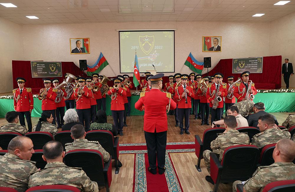 Respublikanın Xalq artistləri Samir Cəfərov, Gülyaz Məmmədova, Əməkdar artistlər Cahangir Qurbanov, Təyyar Bayramov, Nigar Şabanova, gənc istedadlar Vüqar Qarabağlı, Kənan Bayramov və Həzi Aslanov adına Ordu İdeoloji və Mədəniyyət Mərkəzinin xoreoqrafiya qrupunun Vətəni, Müzəffər Ali Baş Komandanı, ordu ilə xalqın birliyini, şəhidlərin ölməzliyini, Azərbaycan Ordusunun qüdrətini tərənnüm edən vətənpərvərlik mahnıları, şeirlər və rəqslər tədbir iştirakçılarını daha böyük uğurlara ruhlandırıb.