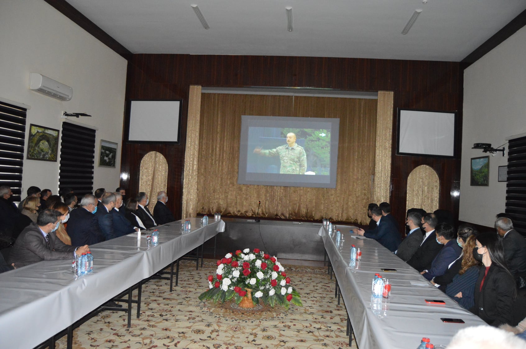 Tədbirdə torpağlarımızın bütövlüyü uğrunda gedən müharibələrdə canından keçmiş Şəhidlərimizin əziz xatirəsi 1 dəqiqəlik sükutla yad edilib.