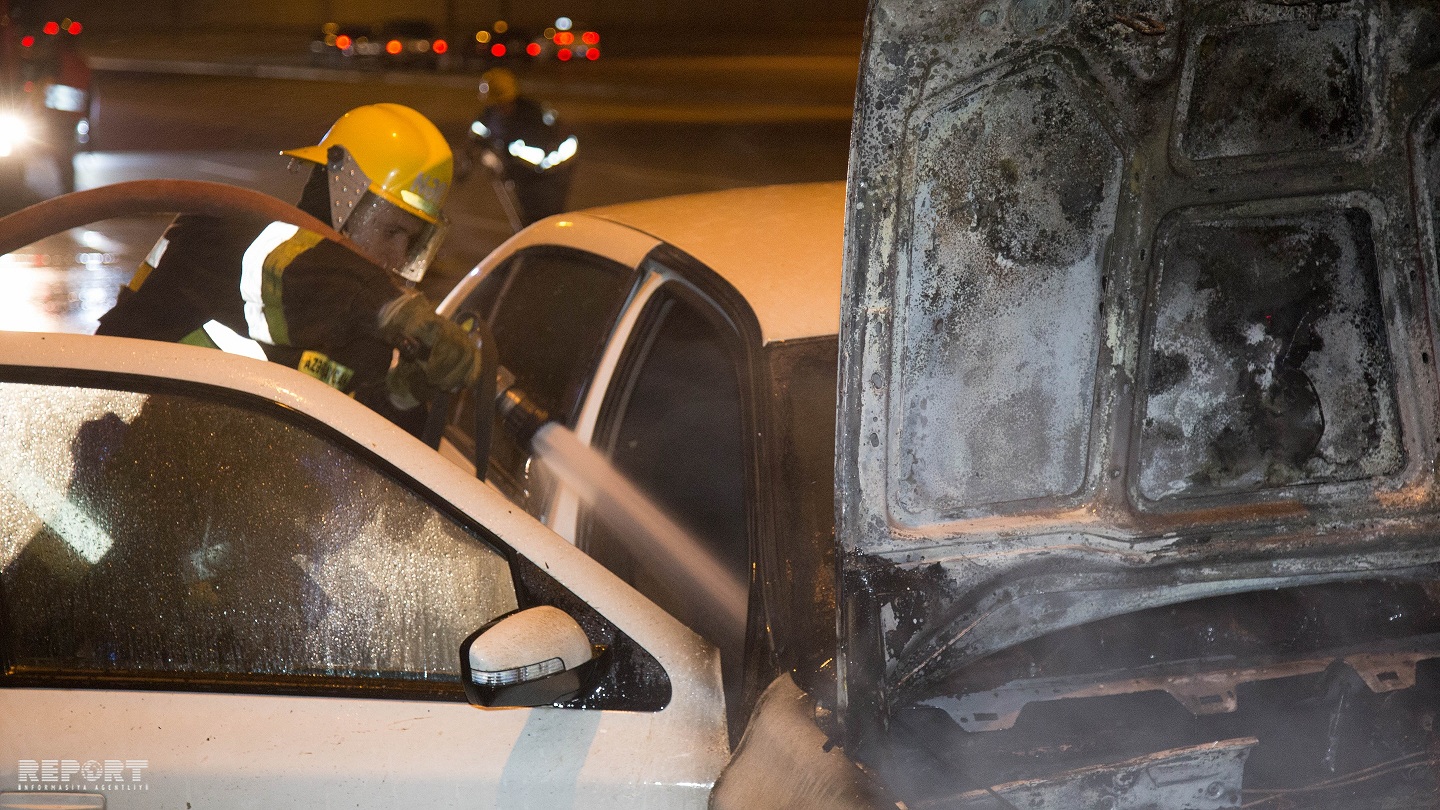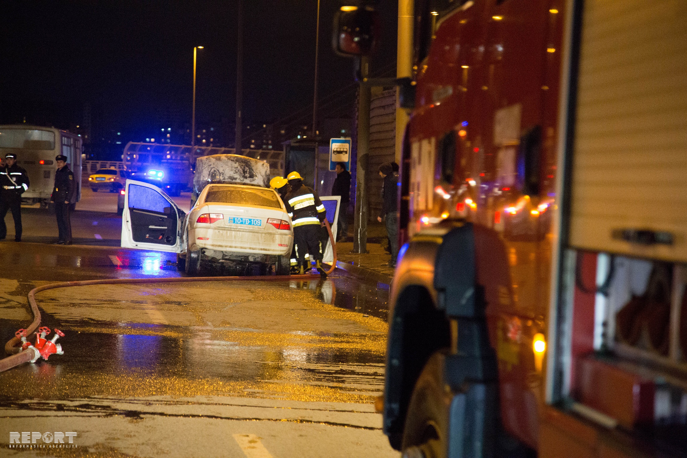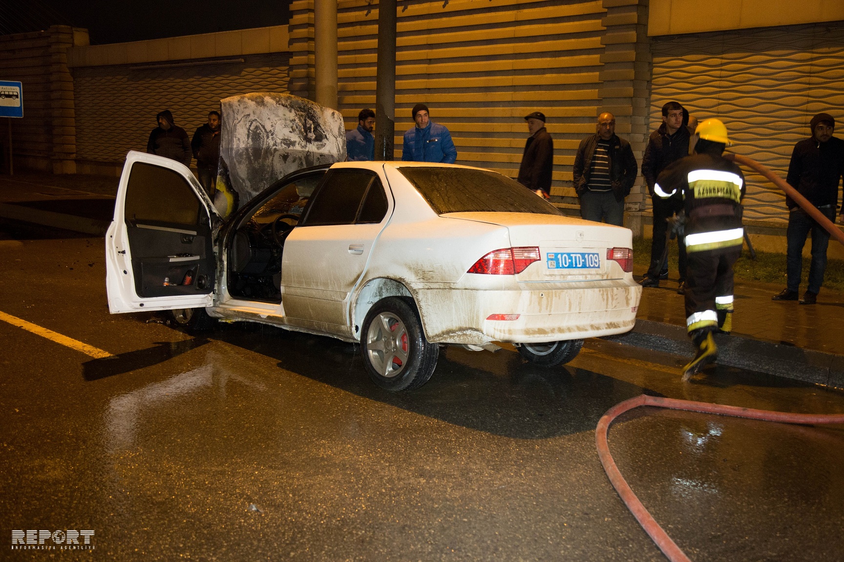 Ziya Bünyadov prospektində minik maşını yandı - FOTO