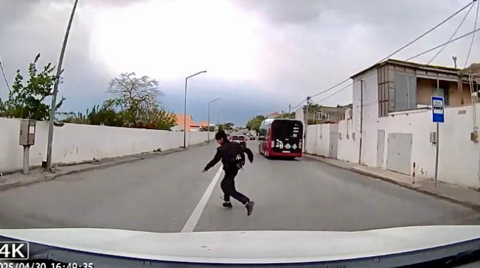 Avtosfer.az-ın məlumatına görə, hadisə bir müddət əvvəl günorta saatlarında qeydə alınıb. Belə ki, avtobusun önündən qəfil çıxan piyada qaçaraq yolu keçib. Bu vaxt o, hərəkətdə olan avtomobilə çırpılmaqdan son anda yayınıb. Kadrdan da göründüyü kimi, məktəbli yaxınlaşmaqda olan maşını görür, lakin hərəkətinə davam edərək həm özünü, həm də sürücünü təhlükəyə atır. Üstəlik yaxınlıqda piyada keçidinin olmasına baxmayaraq o, yolu təyin olunmamış yerdən keçib. Xoşbəxtlikdən sürücü piyadanı vaxtında görərək sağa manevr edib və baş verəcək qəzadan xilas olub.