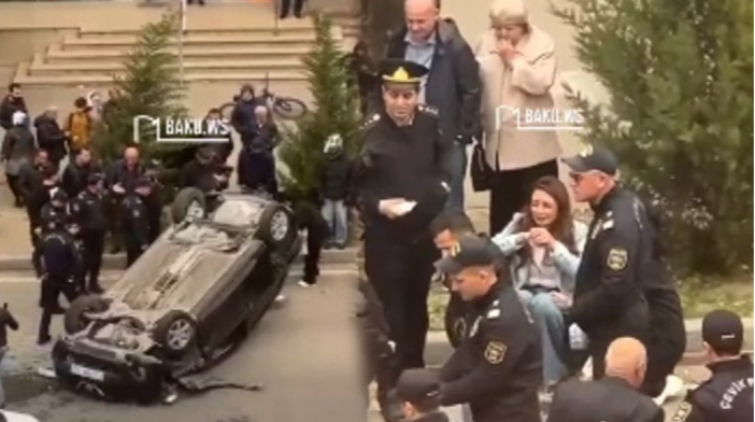 Bakıda xanım sürücü maşını aşırdı - VİDEO