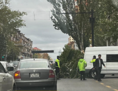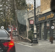 Ötən axşam saatlarından başlayan güclü külək Bakının mərkəzində böyük ağacın aşmasına səbəb olub.