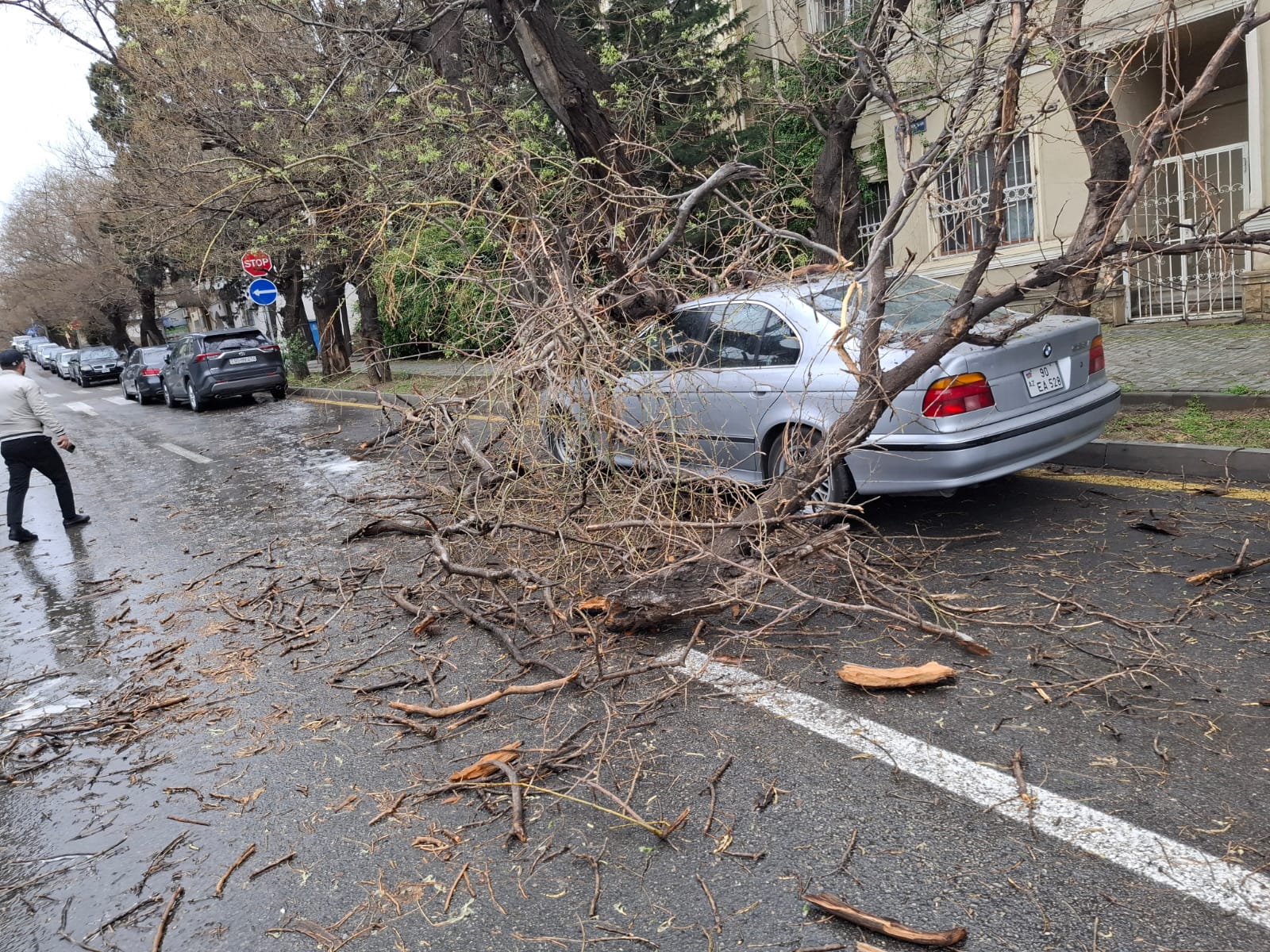 Belə ki, rayonun Hənifə Ələsgərov və Mustafa bəy Topçubaşov küçələrinin kəsişməsində maşının üstünə ağac aşıb. 90-EA-528 nömrəli “BMW” markalı avtomobilin sahibi yolun kənarında saxladığı halda, güclü külək səbəbindən ağacdan qopan budaqlar maşının üstünə aşıb.