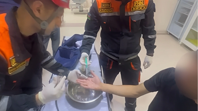 Xilasedicilər tərəfindən xüsusi vasitələrlə üzüyün təhlükəsiz qaydada çıxarılması təmin edilib.