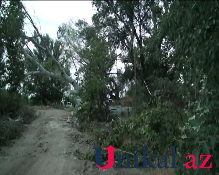 Avtosfer.az unikal-a istinadən xəbər verir ki, təbiət hadisəsi rayon ərazisində qeydə alınıb. Küləyə tab gətirməyərək aşan irigövdəli ağac transformatorun üzərinə düşüb. Həmçinin, sakinlərə məxsus istixana, arpa, buğda, günəbaxan, sahələrinə gediş-gəlişi kəsib. Həmin yoldan istifadə edən təsərrüfatçılar ağacın ərazidən götürülməsi üçün adiyyatı qurumları məlumatlandırıblar.