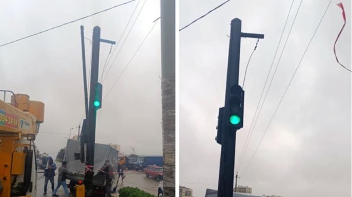 Güclü külək Bakıda svetoforlara ziyan vurub - FOTO