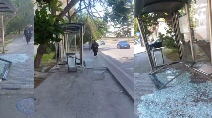 Bakı şəhərində davam edən güclü külək dayanacağın şüşəsinin sınmasına səbəb olub.