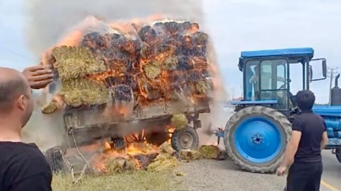 İmişli rayonu ərazisində traktorun qoşqusu və ot tayası yanıb.